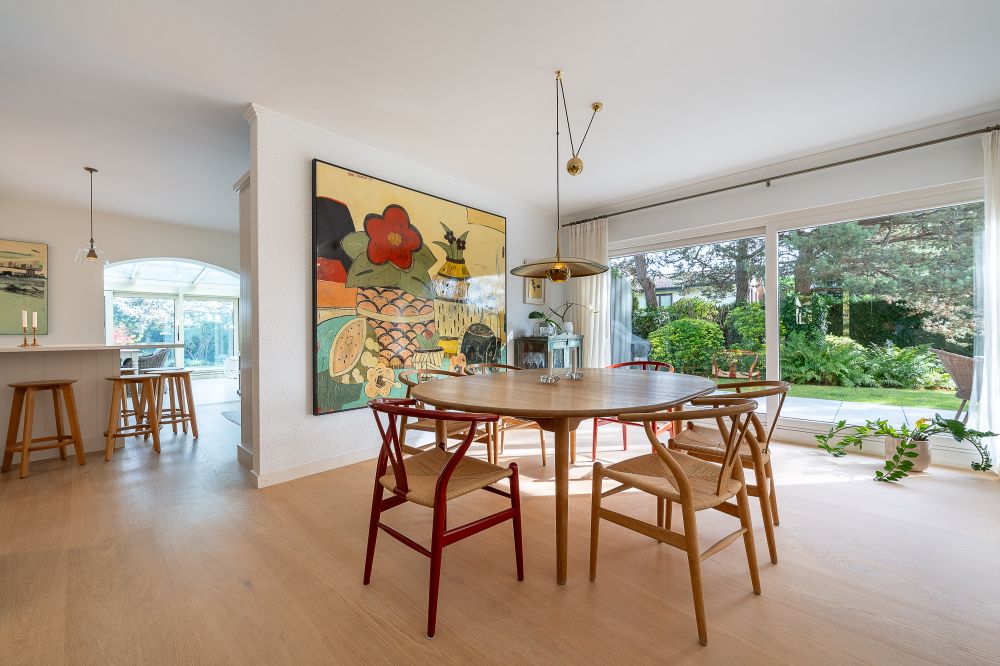 Nichée dans un écrin de verdure, cette superbe villa vaudoise jouit d’un cadre paisible et d’une intimité rare. Rénovée et agrandie avec goût, elle allie charme, confort et matériaux de haute qualité.