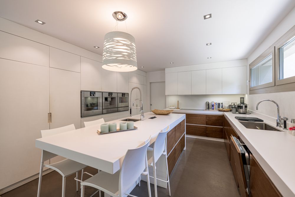 d’une belle salle à manger et d’une superbe cuisine toute équipée d’appareils Gaggenau. Ce niveau offre également un espace chambre à coucher / bureau ainsi qu’une salle de bain réalisée avec beaucoup de goût.
