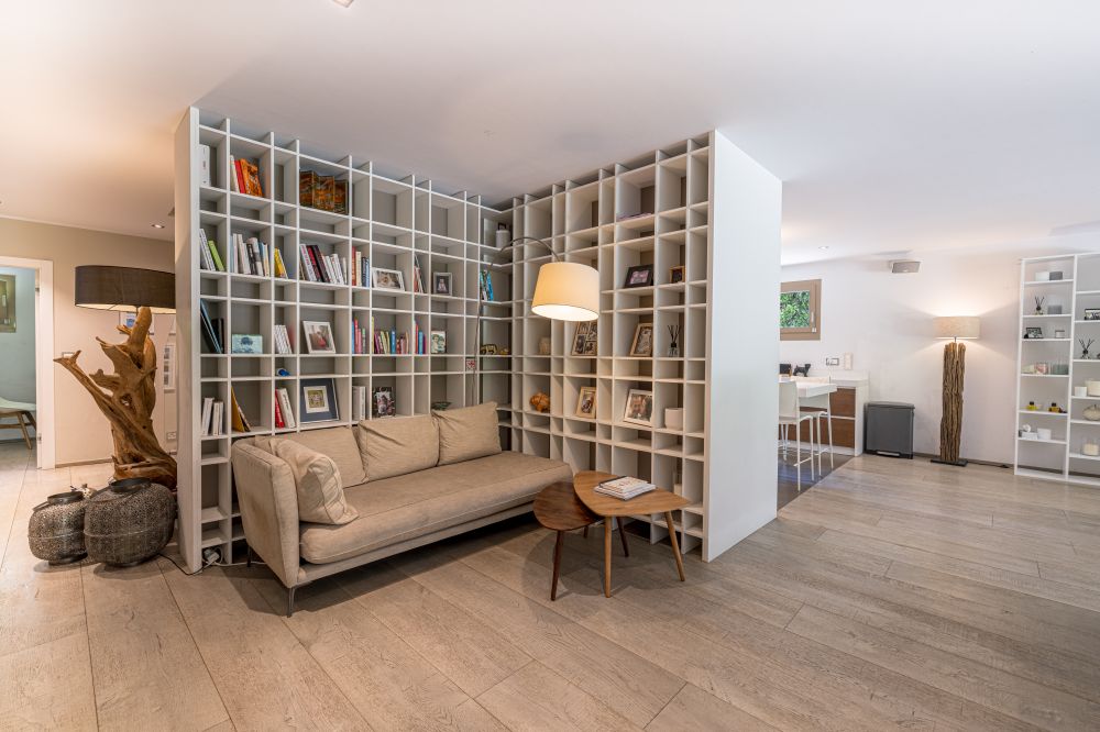 Le rez-de-chaussée offre un spacieux hall d’entrée doté de rangements qui fait découvrir les magnifiques volumes de ce triplex aux finitions haut de gamme. Ce niveau très bien aménagé propose une grande pièce de vie composée d’un espace bibliothèque, d’un magnifique salon très lumineux,