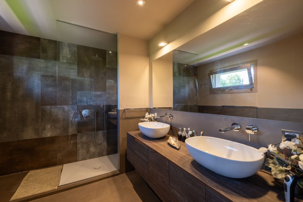 Le premier étage est dédié à la partie nuit et offre deux belles chambres à coucher ainsi que deux salles d’eau dont un magnifique espace master avec dressing et salle de douche en suite.