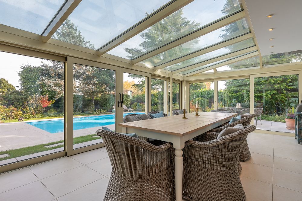 Le rez-de-chaussée s’ouvre sur un vaste salon lumineux avec cheminée, une cuisine Neptune sur mesure équipée d’une cuisinière Lacanche et une véranda chauffée offrant une continuité harmonieuse vers le jardin. Une chambre ou bureau et un WC visiteurs complètent ce niveau.