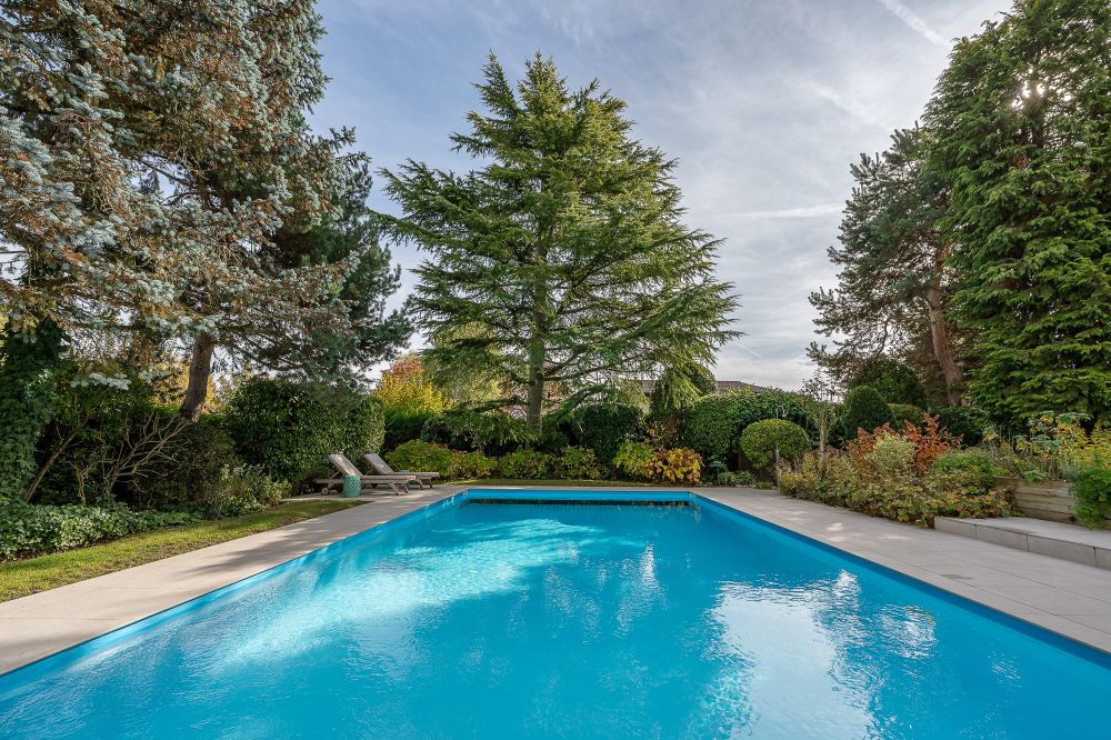 À l’extérieur, le jardin paysager, bordé d’arbres matures, invite à la détente et aux repas en plein air. Un garage double et plusieurs places extérieures complètent ce bien d’exception.